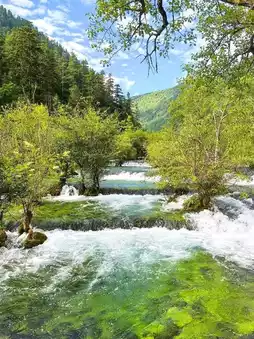 The vibrant colors of Jiuzhaigou's lakes are the essence of the area. The limestone and algae beneath the water create a dazzling array of hues—emerald, turquoise, and azure—that resemble jewels immersed in the water. The Five-Flower Sea, in particular, transforms into a vibrant display of colors throughout the day, reflecting the changing ocean temperature and sunlight, creating a truly captivating experience, resembling a living work of art.
