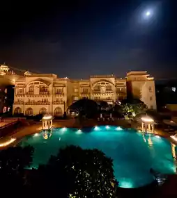 Taj Hari Mahal offers a heritage ambiance reminiscent of a palace. The marble detailing, expansive lawns, and architectural design contribute to its majestic atmosphere, and the pool was a standout for us. The staff went above and beyond for the birthday celebration, including a trip to Osian and cakes—one upon arrival and another the next morning. Appreciation goes to Chef Ranjeet, the catering staff, and Lokendra, Dheeraj, Gaje, and Jagpal for their excellent service. Ajay Singh, our driver, was courteous and supportive, while Suryavardhan from the travel desk managed all plans flawlessly. Our initial contact, Sachem, the Operations Manager, ensured a seamless coordination. A suite upgrade was a kind touch, making for a warm and cheerful stay—perfectly reflecting the Taj ethos.