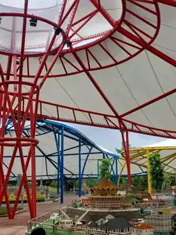 Features: A Lego-themed park with rides, a water park, and a hotel.
