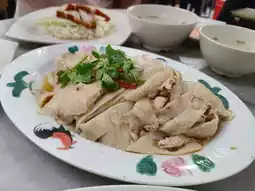 Hainan Chicken is poached, resulting in silky and tender meat. The rice is cooked in the chicken broth, giving it a rich flavor. The dish is known for its fragrant rice, flavorful chicken, and tangy chili sauce.