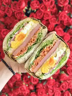 The café itself exudes a tranquil, inviting atmosphere with its spacious interior and minimalist, modern design. The soft, warm lighting creates an ambiance that is perfect for unwinding, working, or enjoying quality time with friends. A highlight of the café is its picturesque rose photo spot, which has quickly become a popular feature for guests to snap photos of their vibrant and artfully crafted sandwiches—making it an ideal location for those seeking an Instagram-worthy moment.