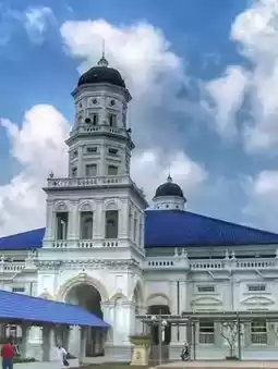 A stunning 1900-built mosque blending Victorian and Moorish styles, perched on a hill overlooking the Johor Strait. Its white walls, blue roof, and spacious prayer hall (for 2,000 worshippers) are iconic. The hilltop offers panoramic city views.