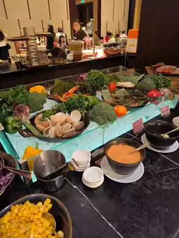The dessert corner was a highlight! Rows of beautifully plated cakes, kuih, fresh fruits, and sweet soups made it hard to choose just one. The space was cozy yet elegant, and the staff were attentive and welcoming. Whether you're staying at the hotel or just dropping by for a meal, the buffet here is definitely worth a try. Perfect for gatherings, celebrations, or just spoiling yourself a little!