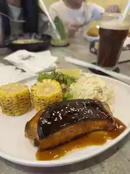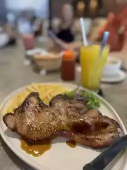 The extensive menu features over 100 dishes, including appetizers, salads, soups, burgers, pasta, baked rice, and grilled meats. A standout dish is the rosemary grilled chicken, known for its crispy exterior and juicy, flavorful interior. Complementing the food is a variety of specialty beverages, such as the Iced Vanilla Mocha and Iced Fuji Apple Tea, offering refreshing options to suit different tastes.