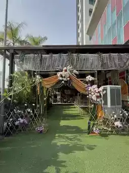 An unexpected highlight was the outdoor event area, which feels especially charming in the evening. The space seems well-suited for weddings and celebrations — soft lights, open air, and a romantic atmosphere that adds character to the hotel’s otherwise practical vibe.