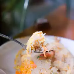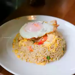 I tried the seafood fried rice with a sunny-side-up egg and minestrone. The fried rice was well-prepared, packed with fresh seafood like prawns and squid, delivering a delightful mix of textures and flavors. The sunny-side-up egg, perfectly cooked, added a creamy richness when its yolk was mixed into the rice.