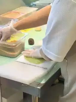 The space itself is just as charming as the mochi—painted in a sunny, uplifting yellow that immediately brightens the mood. It’s a small but inviting corner, cozy and cheerful, where the joyful energy matches the care and craftsmanship put into every mochi. The vibe makes it easy to slow down, savor your treat, and maybe even chat with the friendly staff who clearly love what they do.