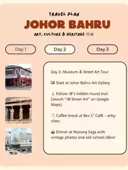 • 🚶 Follow JB’s hidden mural trail (search “JB Street Art” on Google Maps)