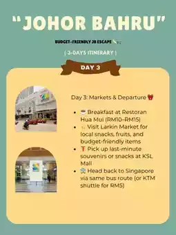 • 🚍 Head back to Singapore via same bus route (or KTM shuttle for RM5)