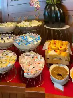 Sweet indulgence with cakes ๐ฐ, puddings ๐ฎ, and tropical fruits ๐.