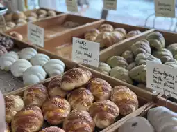 The store was lined with delicious-looking breads.