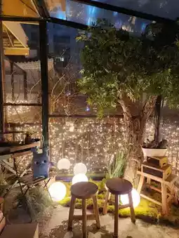 I visited the most famous cafe in Anguk, Dotori Garden! 🌟 I went there in the evening after going around other places, and I fell in love right away because the entrance of the store was so pretty. The lights twinkling in the dark sky are really charming. ✨ I immediately understood why so many people visit.