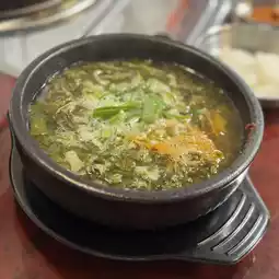 Reminiscent of the warm bowl of soup your grandmother used to prepare early in the morning during childhood! Lee Bok-hee's signature dish is the hangover soup, made with 1++ grade Korean beef and carefully selected beef bone broth simmered for 48 hours with dedication. π