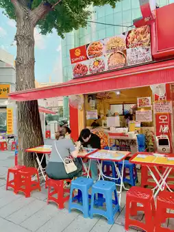 On a nice day, wrap up your Seoul itinerary at this ultimate outdoor dining spot. Enjoy delicious street food and a refreshing beer.