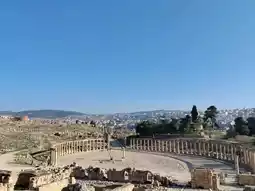 Hadrian's Arch is the most striking landmark at the entrance. This 13-meter-high arch was built to commemorate the visit of Roman Emperor Hadrian. Passing through the arch, I was greeted by the Oval Plaza, a unique oval-shaped square surrounded by a colonnade, which remains a symbol of Jerash's grandeur.