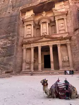 The moment I arrived at the Khazneh Temple was really shocking! The huge rock carvings were in front of us, and the camel stood in the middle as the background. It was very touristy, but we still took a lot of photos!