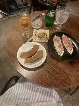 I ordered melon prosciutto, banana brûlée, house wine, and sparkling water. The wine was delicious, and the snacks were easy to enjoy. If you're looking for a wine bar with a great atmosphere for a date in Euljiro, I highly recommend 10th.