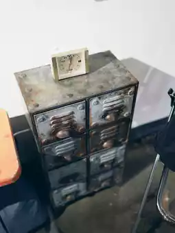 From the old metal lockers, to the vintage audio system, and even the CRT TV,