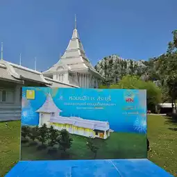 The highlight here is the white Homnasikar building. Inside this building, it is divided into 3 zones: Zone 1 (no photography) is a replica of the image of the Lord Buddha before he became a Buddha. Zone 2 (photos allowed) has a 30-inch Buddha statue covered in pure gold. There is an embroidered image resembling the Buddha, Phra Borom Lokanat, which used more than 651,000 stitches and 49 colors of thread. Zone 3 (no photography allowed) is the present era, displayed in the form of a modern p