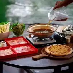 In the evening, we ate here and had it served on the balcony in front of the room. It was a shabu set with pork, beef, and seafood. You can choose which set you like. There is also a pizza menu with many toppings to choose from.