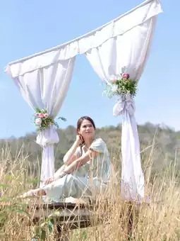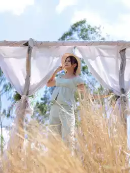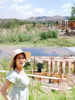 The cafe features a bamboo balcony extending from the main entrance, offering a great spot to enjoy the view, catch the breeze, and take photos. The cafe's simple decor emphasizes the lush greenery and offers a variety of chic photo opportunities. It's perfect for chilling out, taking photos, or simply relaxing.