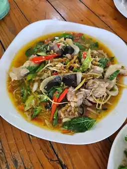 This restaurant is located near the Kaeng Krachan Dam. Drive up the hill, and you'll find the restaurant on the left-hand side. The restaurant provides parking spaces, and there are both indoor and outdoor seating areas. You can enjoy your meal while taking in the beautiful scenery.