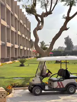 The interior of this historic building boasts classical beauty with Arabesque patterns and vintage chandeliers. With resort-style swimming pools, gardens, and well-appointed rooms, you can enjoy relaxation and comfort even during a long journey. 🛋️🌿🌞
