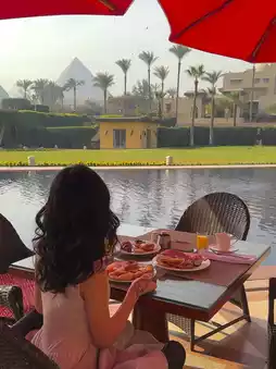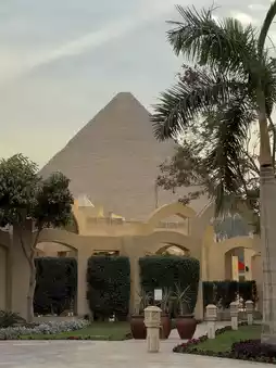 Mena House is a historic hotel located just a few steps away from the Giza Pyramids. Standing on the balcony, the silhouette of the Great Pyramid unfolds before your eyes, almost surreal. The morning air of Egypt blends with the grandeur of ancient history, leaving a deep impression. 🏜️🌄🕊