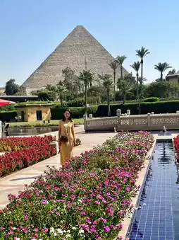 As you stroll through the hotel gardens, the pyramids peek out from between the palm trees. The deep green contrasts with the sand, creating a landscape where long history coexists with the freshness of summer. 🌴🏛️☀️