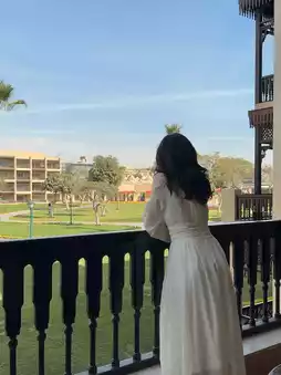 The sky is a pale gold, and the air is still cool. Standing by the window, the iconic pyramids of Egypt quietly appear. It's a moment where even time seems to slow down. 🌅🏜️🌿