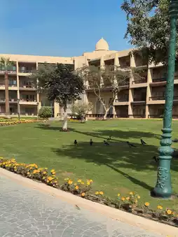Marriott Mena House Cairo is located right in front of the pyramids, offering a breathtaking view of Egypt's iconic landmarks as soon as you open your room door. The meticulously maintained garden, adorned with palm trees and flowers, creates a serene and elegant atmosphere. A morning walk accompanied by birdsong feels truly special. 🌺🌴🌞