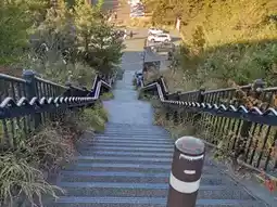 There is a free parking lot, but be careful as the stairs are quite steep. lol