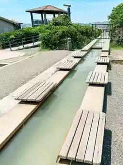 A footbath with a total length of about 100m. The hot springs are said to spring from 1,000m underground, and the reddish brown water is its characteristic!
