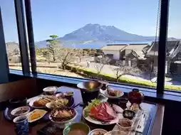 On the second day, we explored Kagoshima on our own. I had been wanting to visit a restaurant in Sengan-en Garden, and I took photos from the same spot as others.