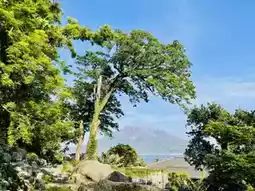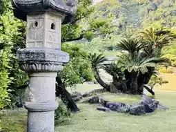 Peace and tranquility in the traditional enchanted Japanese Sengan-en gardens, with hidden Shinto shrines, bamboo trees and blooming flowers, with the striking backdrop of Sakurajima “cherry blossom” active volcano 🌋 and Kagoshima Bay🌳 ⛩️ 🇯🇵 ⛩️ 🌳