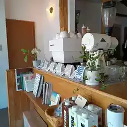 The ambiance of the shop is very comfortable and relaxing. The interior design is particularly beautiful, featuring wood, plants, warm concrete, and ample lighting.