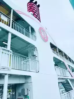 On the top deck, feeling the breeze and imagining myself in a Titanic-like moment, we arrived in no time 🏝️.