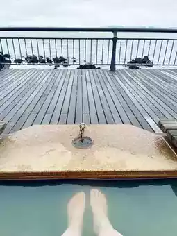 I enjoyed a free foot bath 🦵, bought some souvenirs like postcards and magnets, and then took the ferry back.