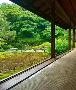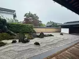 At the heart of Sengan-en lies a stunning karesansui (dry landscape) garden, embodying the essence of Japanese garden design. The karesansui garden features white sand and gray pebbles, meticulously arranged to create a picturesque representation of mountains and water. At the center of the garden stands a symbolic hill, surrounded by wave-like patterns in the sand, symbolizing the ocean. In one corner of the garden, there is a small pond where a few koi fish swim gracefully, adding a touch of vitality to the serene atmosphere. Simple yet profound, the garden reflects the deep cultural heritage of Japan.