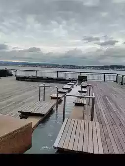 Relax and soothe your feet in a foot bath while admiring the magnificent view of Sakurajima