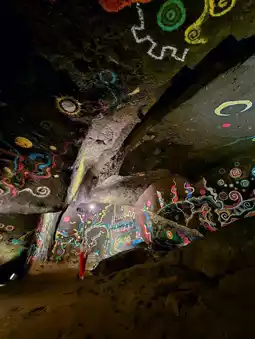 The lighting is self-contained: a switch at the entrance illuminates the interior. Please be mindful of your feet and the sound of water droplets.
