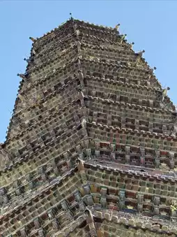 The tower is octagonal and has 13 floors, reaching a height of 55.88 meters. The glazed bricks are decorated with exquisite patterns such as flying apsaras, unicorns, bodhisattvas, and musicians. Each piece embodies the exquisite skills of ancient craftsmen.