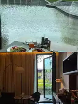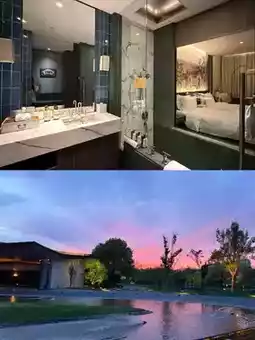 The hotel is located in the middle of the Qingming Riverside Park and the Dasong Wuxia City! You can see the lanterns of Wuxia City from the room window. It only takes 5 minutes to stroll to the scenic spot in Hanfu in the morning, and it is super convenient to soak in the private hot spring after watching the blacksmithing performance at night~