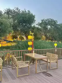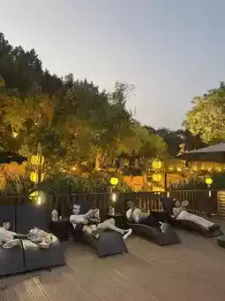 Tired? Relax on lakeside loungers or chairs