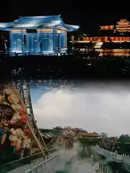At dusk, climb Fuyun Pavilion to watch the sunset, then enjoy the night show "The Great Song: Dream of Tokyo" water curtain show (Zone B 249 RMB)
