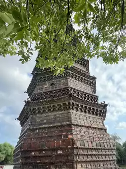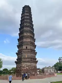 In Kaifeng, the Iron Pagoda (铁塔) stands tall as one of China’s most beautiful and best-preserved ancient towers. Built in 1049 during the Northern Song Dynasty, this 13-story pagoda isn’t made of iron at all — but glazed bricks whose dark color gave it the name.