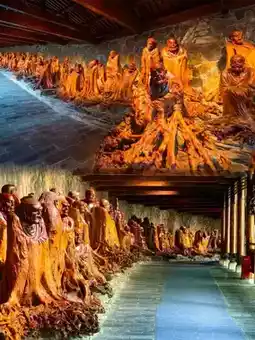 The potted plants in Zuijing Garden are also unique. Various potted plants are arranged in an orderly manner, lush and green, with shape and style. Each pot looks very precious. The Guanyin in the pagoda is also unique. In the main hall is a ten-meter-high Thousand-armed Guanyin, calm and peaceful. In addition, a series of Guanyin statues are displayed on the second floor. They are of various shapes, vivid and detailed, and every hair is clearly visible.