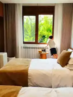 We stayed at this super healing homestay! Each building’s first floor is a cozy common area—living room, chess and card room, dining room, everything you need, it really feels like going back home! Surrounded by green mountains and clear waters 🌲, it’s like a natural oxygen bar~