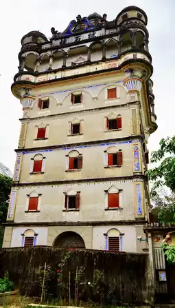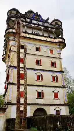 Ruishi Tower is one of the most exquisite diaolou in Kaiping and is known as "Kaiping's First Tower". Built in 1923, the tower is 9 stories high (about 35 meters) and combines Chinese and Western architectural styles, featuring elements such as Greek domes, Roman arches, and Baroque carvings. It is a microcosm of modern Chinese culture.