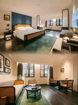 The hotel's design seamlessly blends Lingnan arcade architectural style with modern minimalist aesthetics. The exterior retains the original arches, carvings, and stained glass, exuding a classic elegance. The interior features a modern, simple, yet warm and comfortable style.